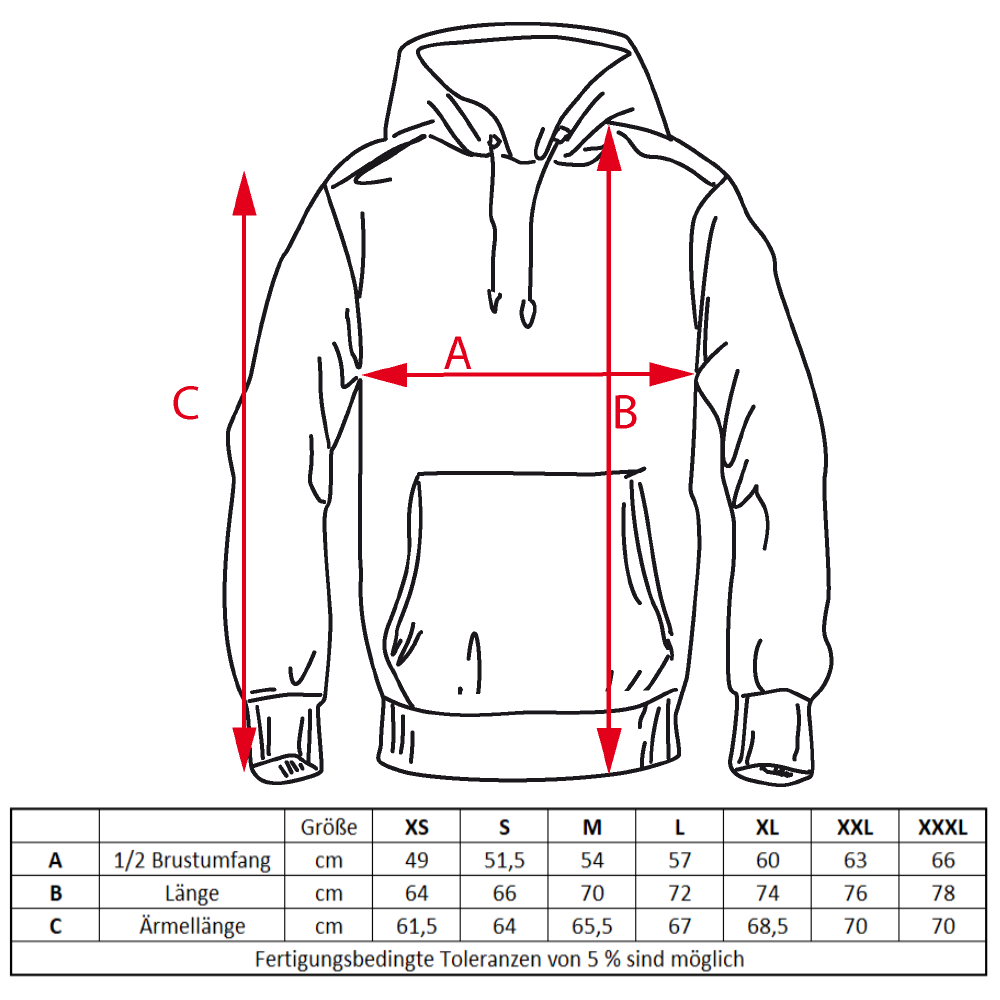 - Die Größen fallen normal aus